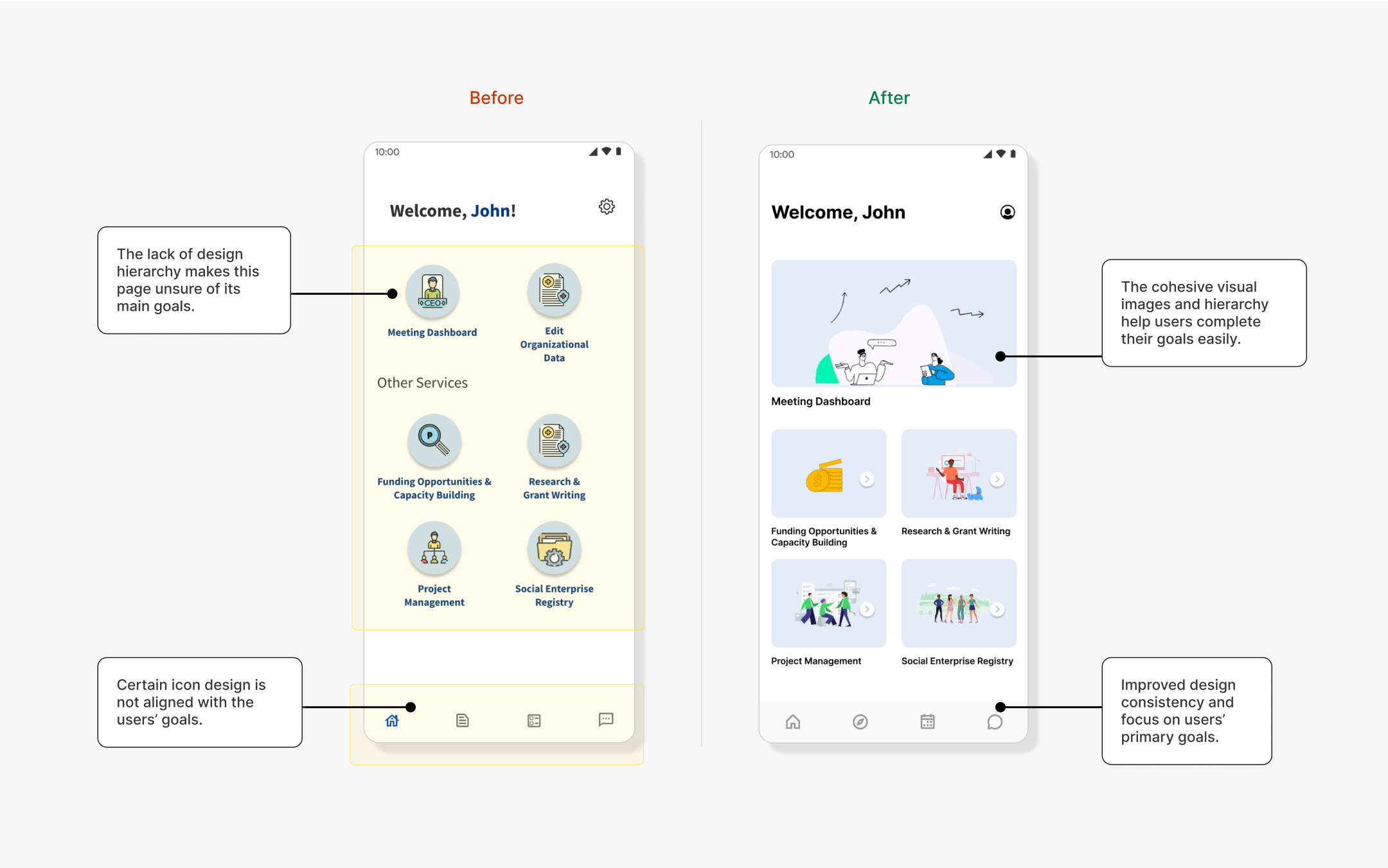 The newly designed dashboard improved visual hierarchy and ensured design consistency by prioritizing users’ goals and needs.