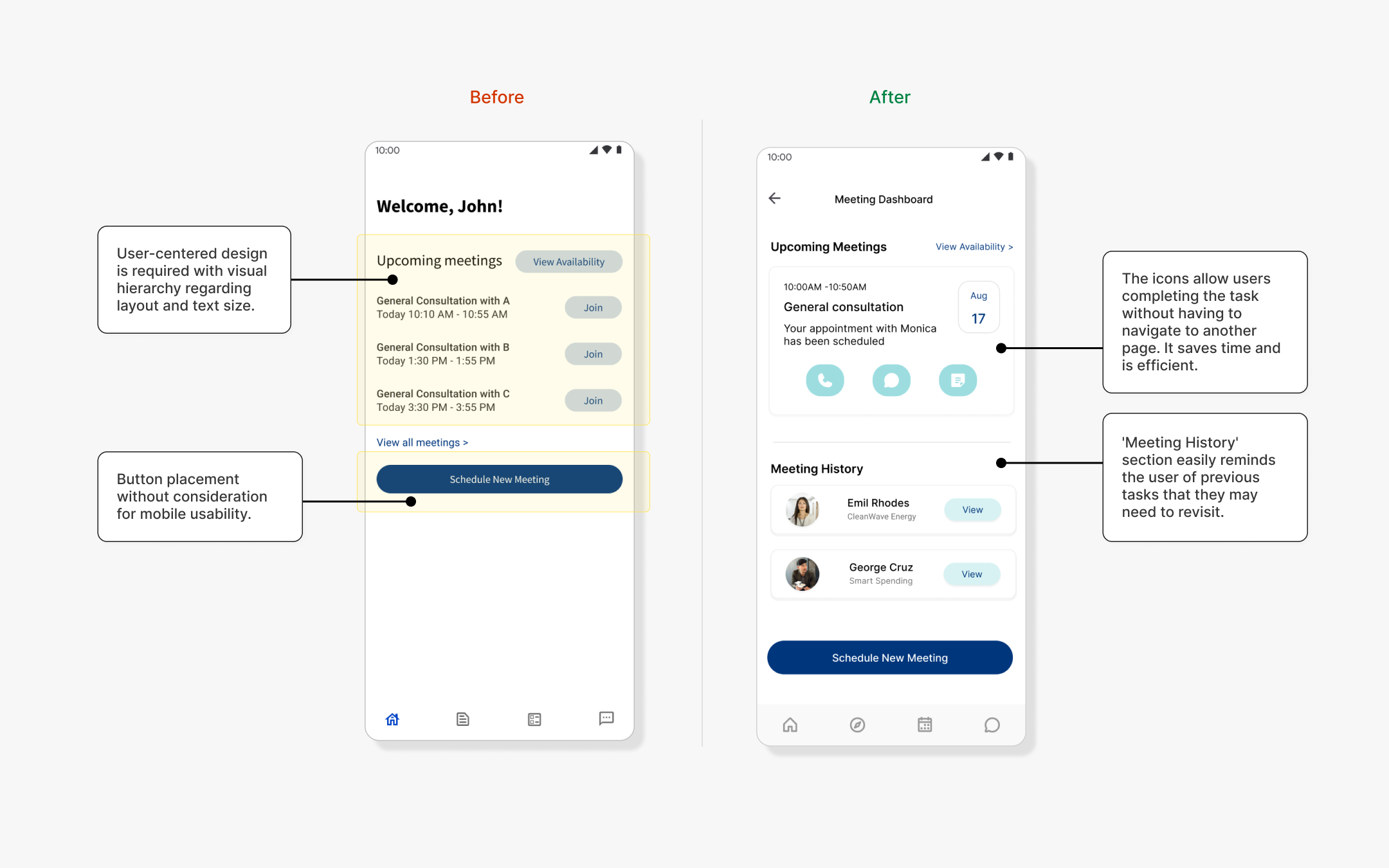 The previous dashboard lacked a mobile-first approach, leading to potential user confusion. The redesigned meeting dashboard enhances mobile usability and simplifies navigation for a more user-friendly experience.