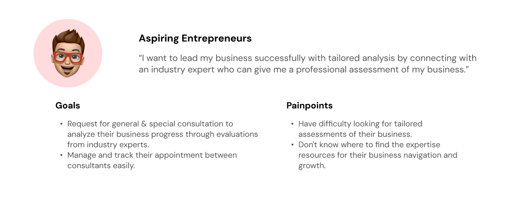 Early-stage entrepreneurs in the Philippines struggle to find quality feedback and evaluations of their business due to the lack of information and guidance to improve their business. This problem not only hinders business success but also discourages organizations from moving forward toward their vision. In order to increase business success and foster closer relationships between entrepreneurs and industry professionals, it is important to provide a technology-enabled platform that allows both users to succeed.