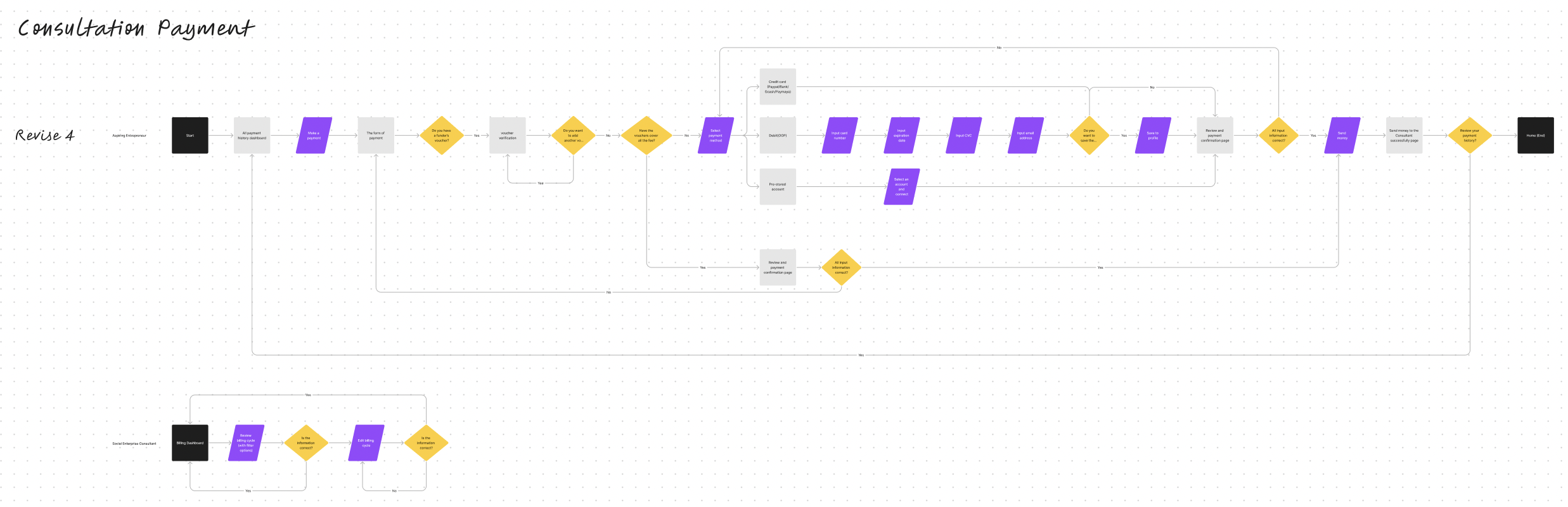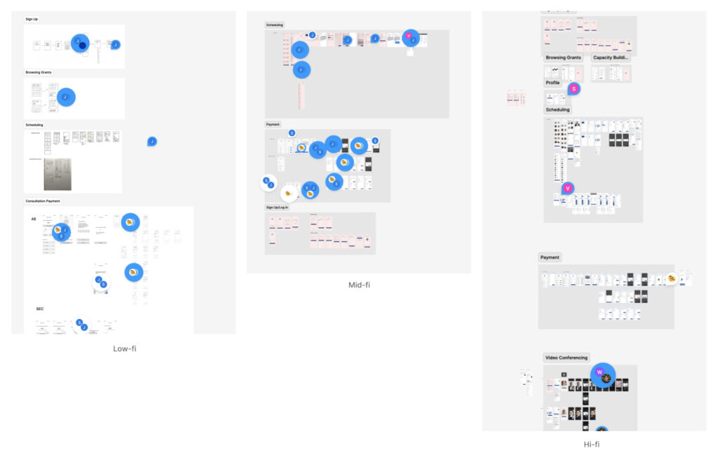 The team split into three groups to design ‘Scheduling’, ‘Payments’, and ‘Video Calls’. This design process helped me learn how to collaborate with others, from coordinating plans to efficiently communicating ideas through Slack.