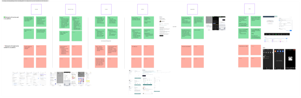 For competitive analysis, the team focused on researching on meeting scheduling (Calendly, ADP List, etc.), video conferencing (Zoom, Google Meet, Microsoft Teams, etc.), and payment (Venmo, PayPal, GCash, Maya, etc.) platforms as these are the main features that the mobile app contains. For each platform, I analyzed their pros and cons as well as how I can apply their certain features to our designs.
